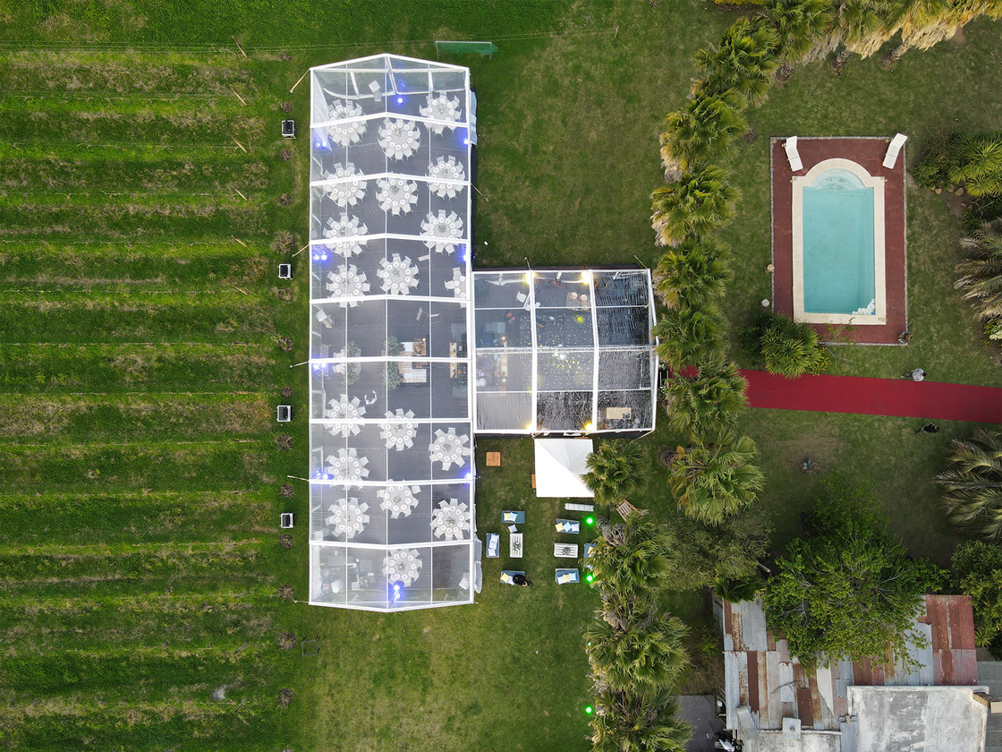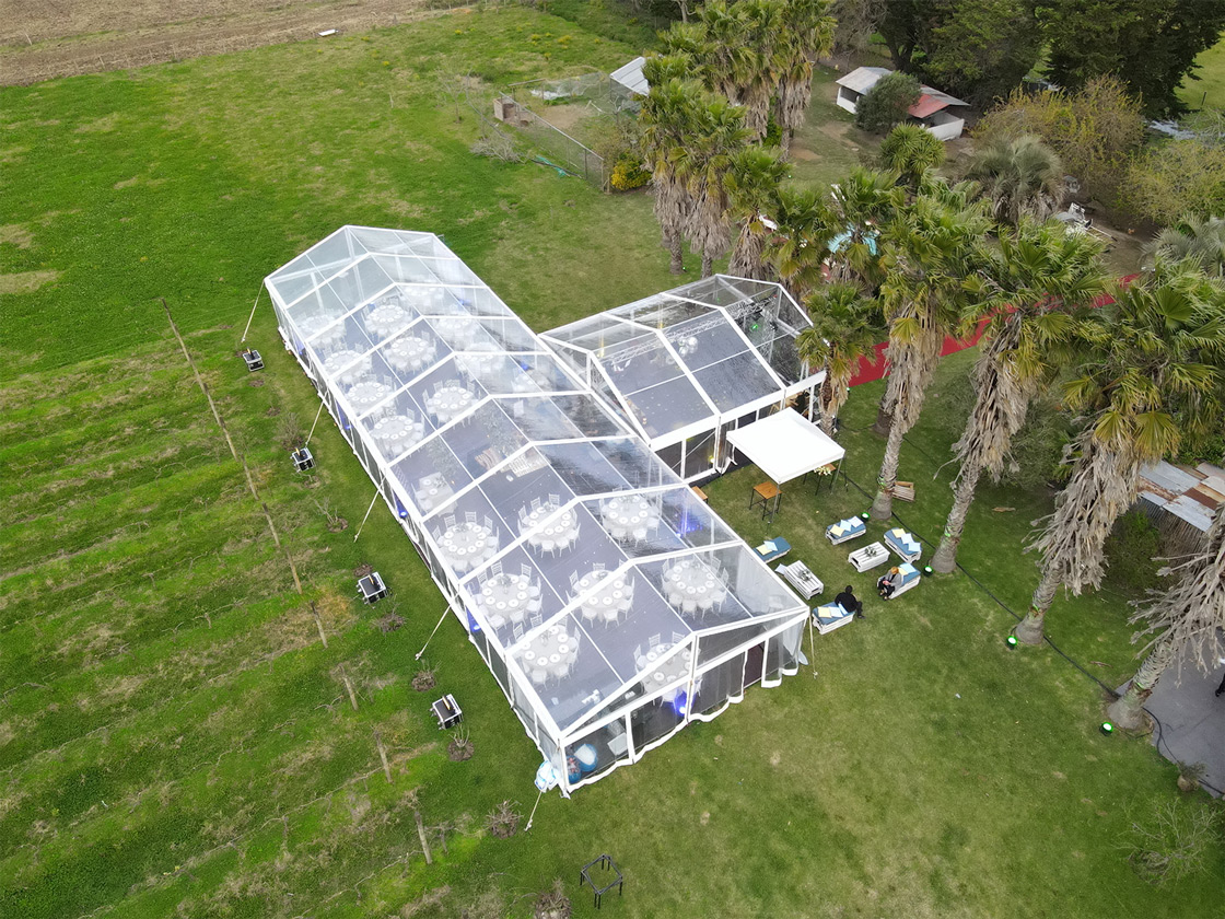 Para esto, montamos no una, sino dos carpas transparentes (porque cuando algo es espectacular, ¡mejor duplicarlo!).